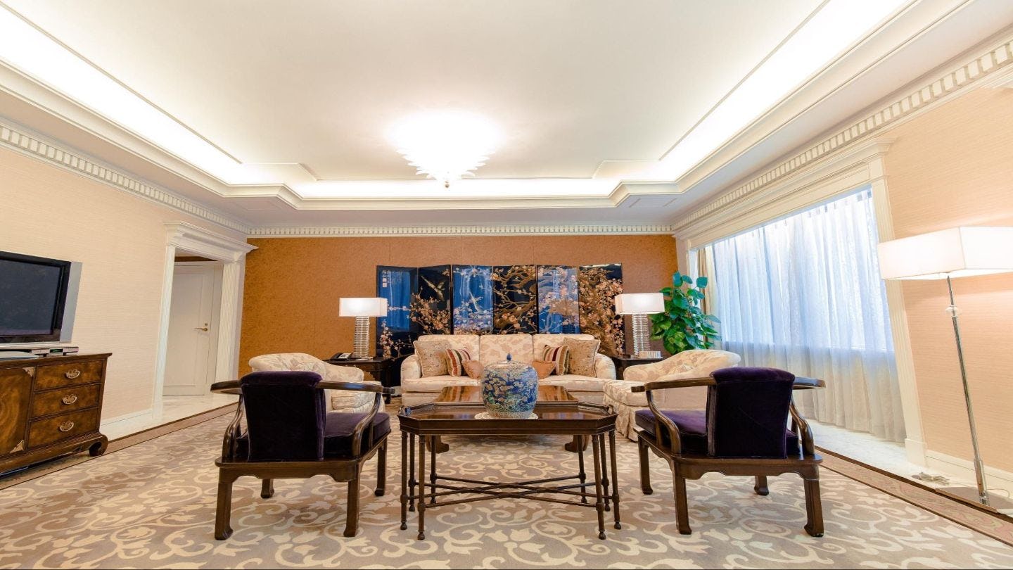 オークラガーデンホテル 上海でワンランク上の滞在を楽しみたい方には、スイートルームがおすすめです。広々としたリビングルームには、座り心地の良いソファやダイニングなど、高級感のあるインテリアが備わっています。
