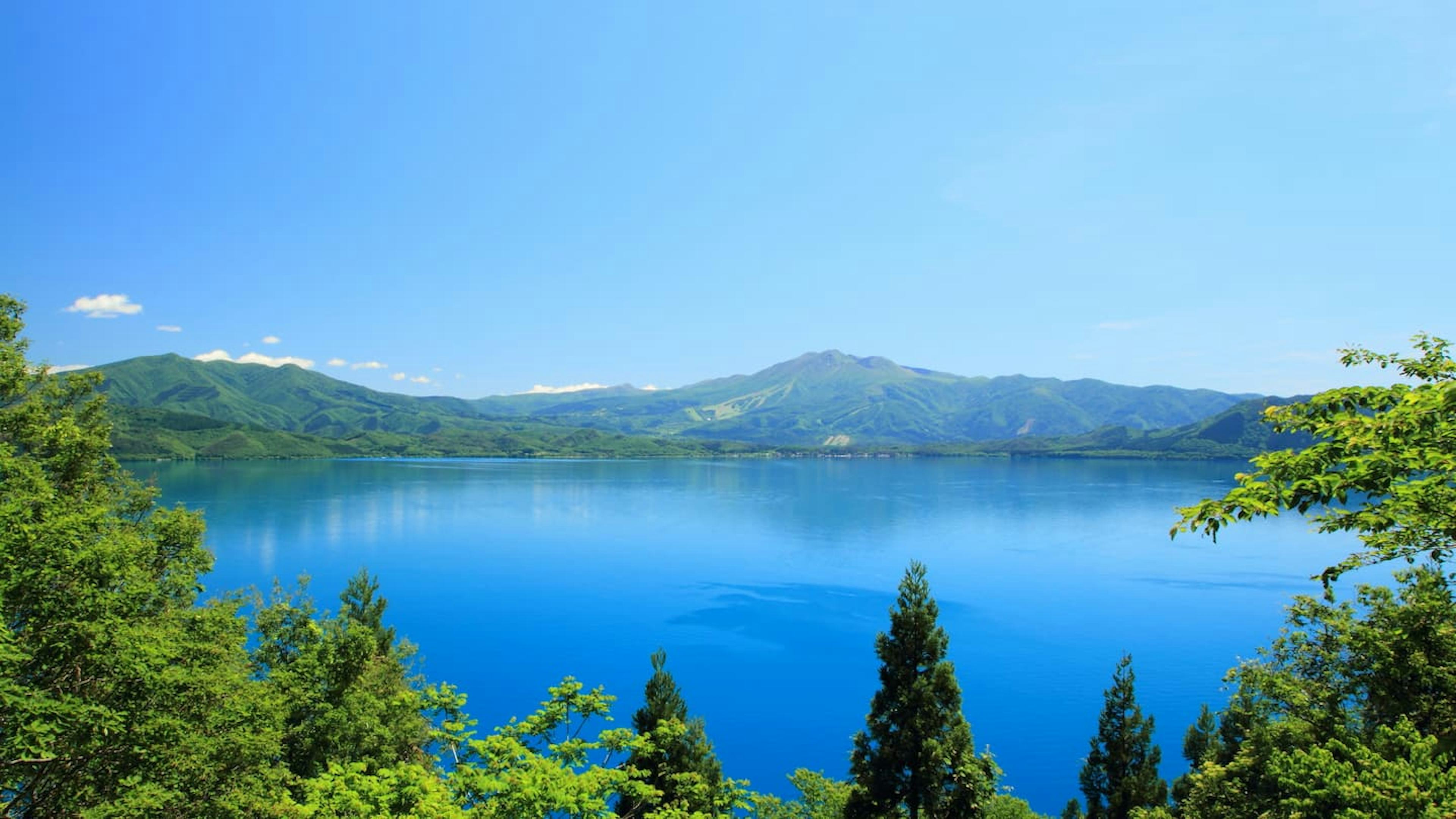 田沢湖は、秋田県仙北市に位置する日本で最も深い湖です。その水深は423.4mにも及び、日本の湖沼の中でも群を抜いています。透明度の高い湖水は、太陽の光の当たり具合や見る角度によって、エメラルドグリーンから瑠璃色、インディゴブルーへとさまざまに変化し、「日本のバイカル湖」とも称されます。