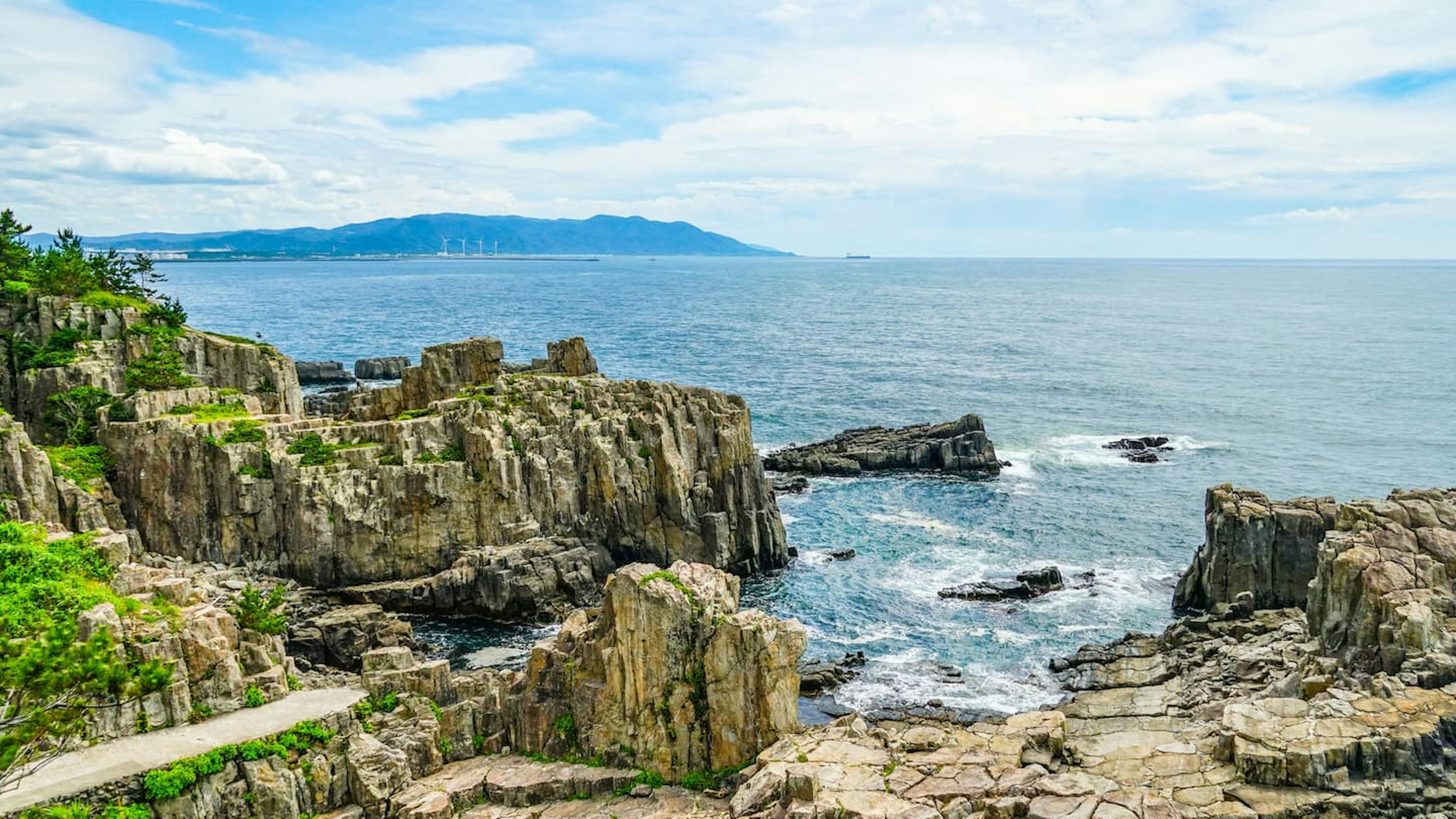 この独特な地形は「輝石安山岩の柱状節理」という地質学的にとても珍しいもので、世界でも3カ所でしか見られない貴重なものなんです。国の名勝・天然記念物にも指定されている、福井が誇る有名な名所。岩場を散策しながら、地球のエネルギーを肌で感じてみてください!