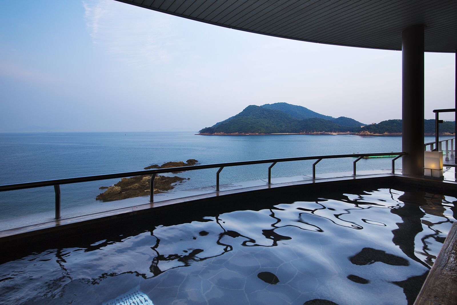 館内は和風の落ち着いた雰囲気ですが、海の絶景が見られ、どこかリゾート感も味わえます。