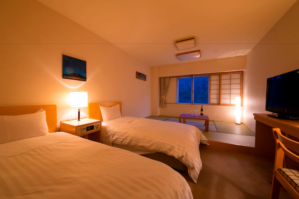 滞在スタイルに合わせて選べる多彩な客室も魅力の一つです。ホテル棟には、25平米の広々とした和洋室や、最上階のジュニアスイートなど、全67〜69室の清潔感あふれるお部屋が用意されています。全室禁煙でWi-Fiも完備されているため、リラックスしながらもデジタルライフを損なうことはありません。
