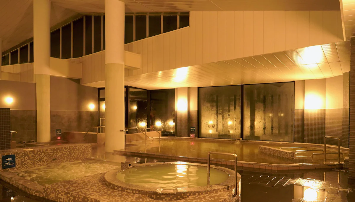 1つは硫黄成分を含む「含硫黄‐ナトリウム・マグネシウム‐炭酸水素塩冷鉱泉」、もう1つは保湿効果の高い「含硫黄‐ナトリウム‐炭酸水素塩・塩化物冷鉱泉」です。さらに、女性・男性の両浴室で無料で利用できる「モンモリロナイト(山形県月布産)」の泥パックも大人気です。泥パックをしたまま温泉に浸かるという、なんとも贅沢な美容体験が可能となっています。
