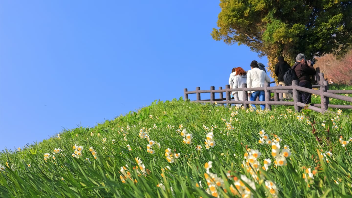 冬に咲き誇る500万本の水仙と海の絶景