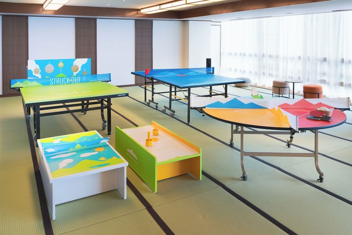 また、5種類の卓球が楽しめる湯けむり卓球場も無料で利用可能。子ども用卓球台やミニホッケーなどもあり、家族みんなでワイワイ盛り上がれますよ。温泉だけでなく、遊びの思い出もたくさん作れるのが霧島国際ホテルの魅力ですね。
