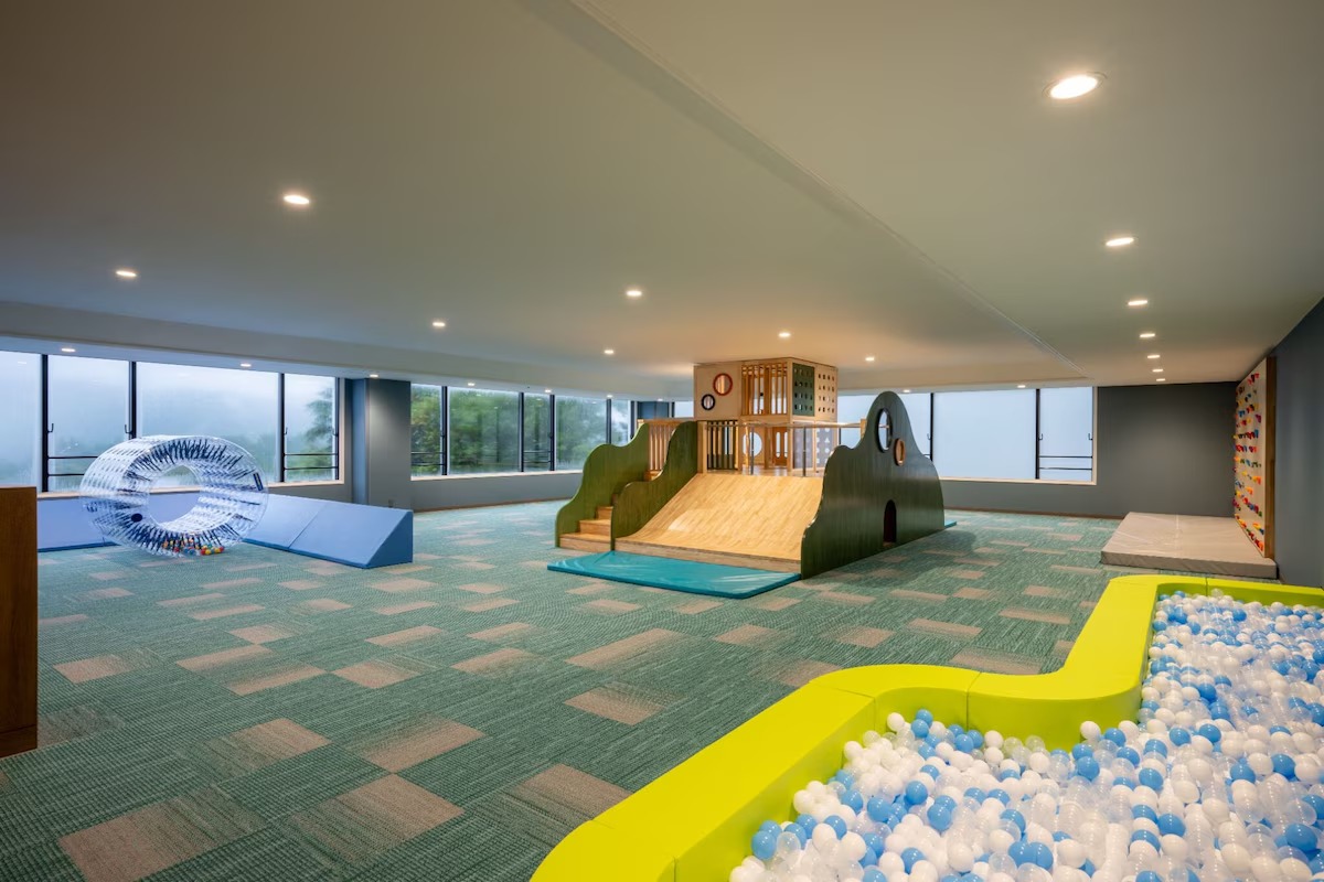 ホテル内には、子どもが体を動かして遊べる施設が充実しています。2階にあるこどんパーク(キッズパーク)は、0歳から12歳までが対象の遊び場。カラフルなボールプールや木製遊具、バブルボールなどがそろい、雨の日でも退屈することなく楽しめますよ。