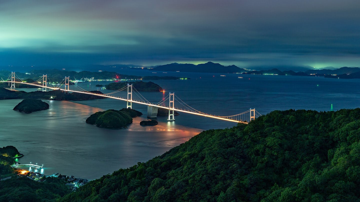 しまなみ街道の7つの橋は個性的な島々を結んでいます。