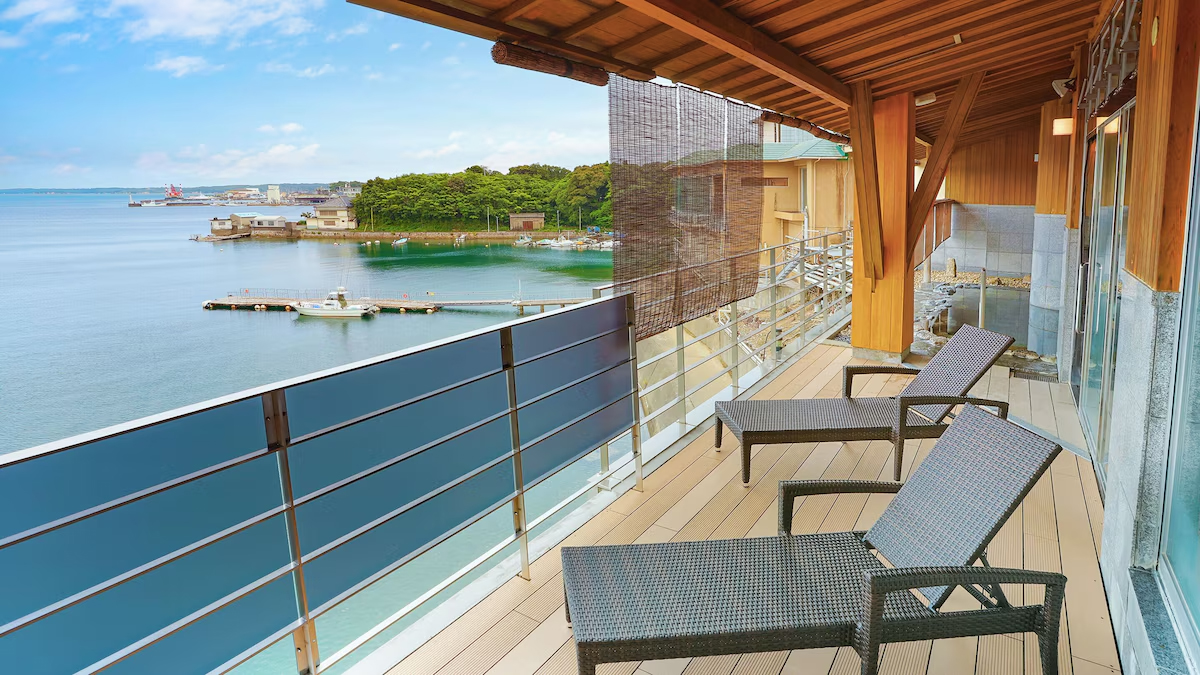 鳥羽湾のオーシャンビュー客室では、窓からうつくしい海を眺めながら過ごせます。温泉大浴場や露天風呂からも海景観を楽しめるので、温泉に浸かりながら絶景を満喫できるぜいたくな時間を過ごせますよ。