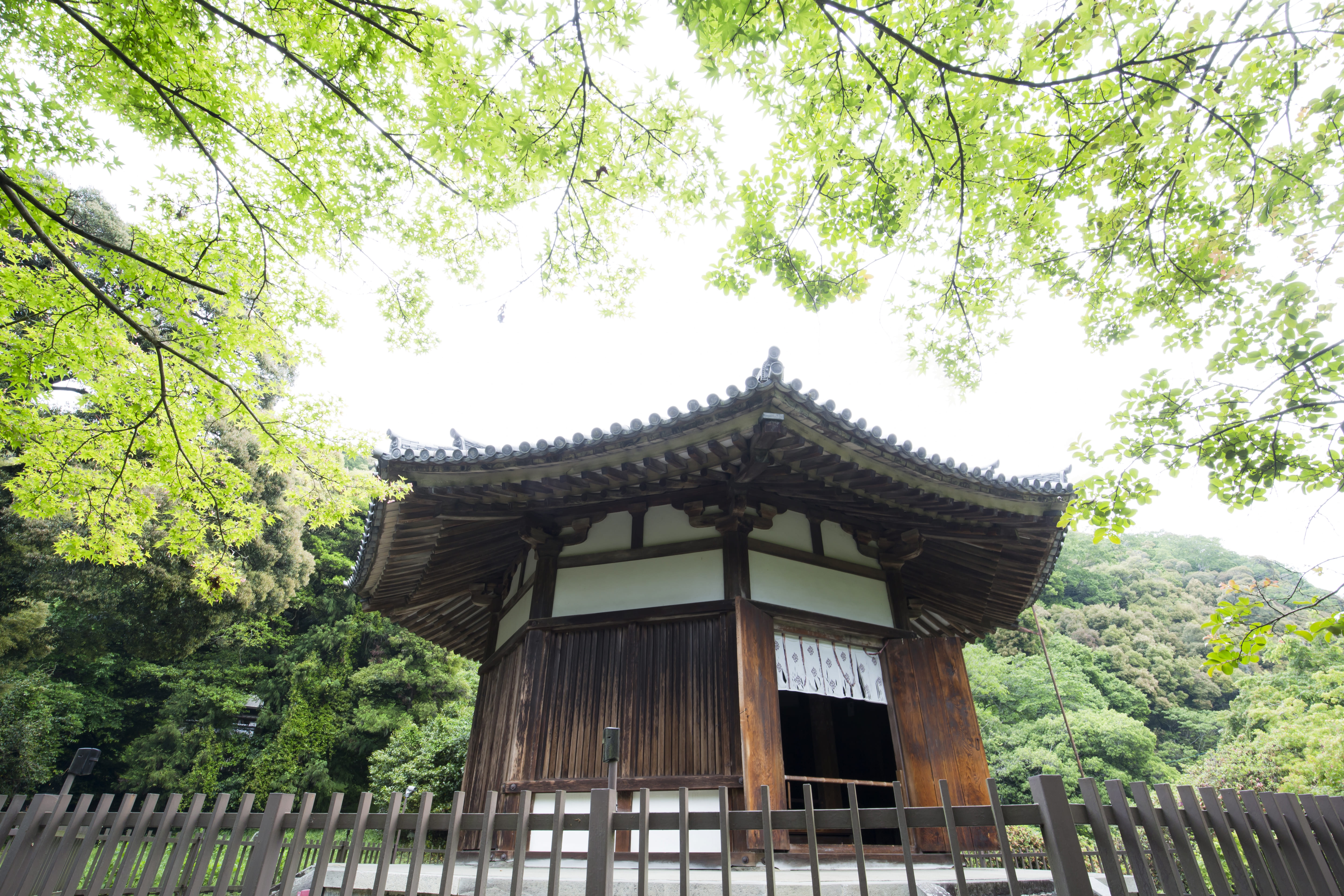 最大の見どころは、奈良時代建築の貴重な遺構として国宝に指定されている「八角堂」。堂内を彩る極彩色の装飾画は、当時の華やかな仏教美術を今に伝える至宝です。また、平安時代の銘を持つ「梵鐘」も国宝に指定されており、歴史の重みを肌で感じることができます。