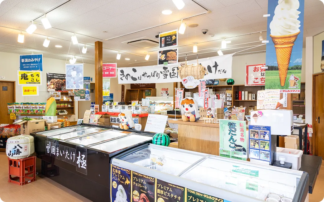 きのこ以外にも、魚沼産コシヒカリや地酒、きのこを使った加工品など、新潟の美味しいものが満載です。お土産探しはもちろん、自宅用にも買い込みたくなる魅力が豊富にあるので、ぜひ訪れてみてください!
