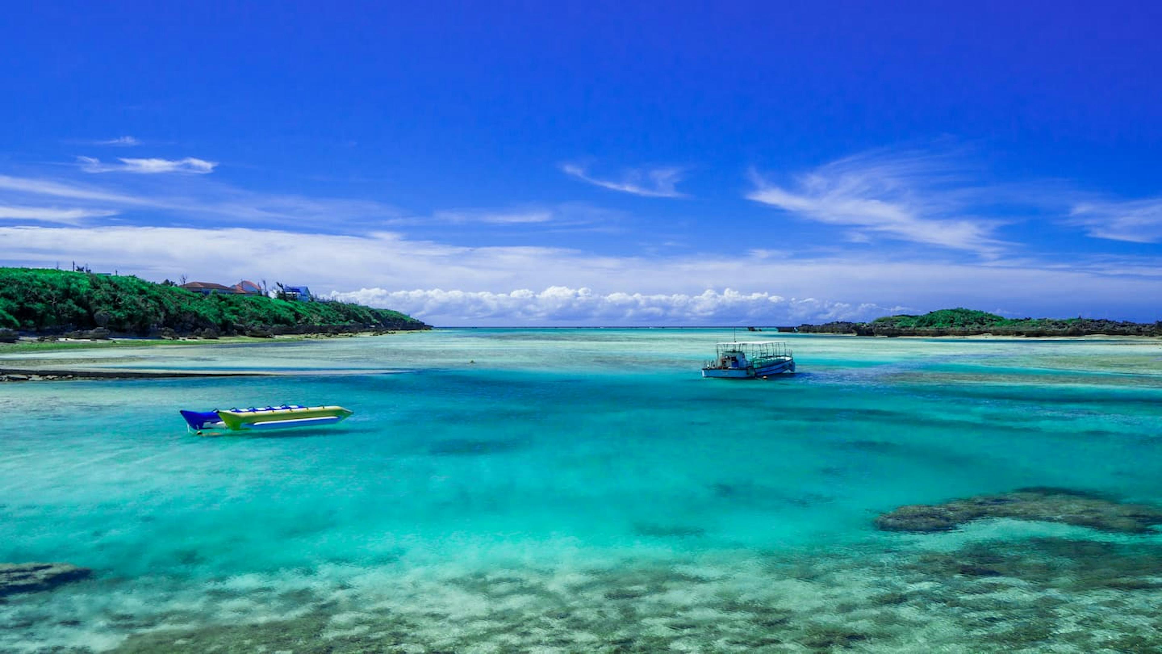 与論島は、那覇空港から飛行機で約40分で行くことができ、美しいサンゴ礁で囲まれている離島です。美しい海の色に感動することまちがいないでしょう!