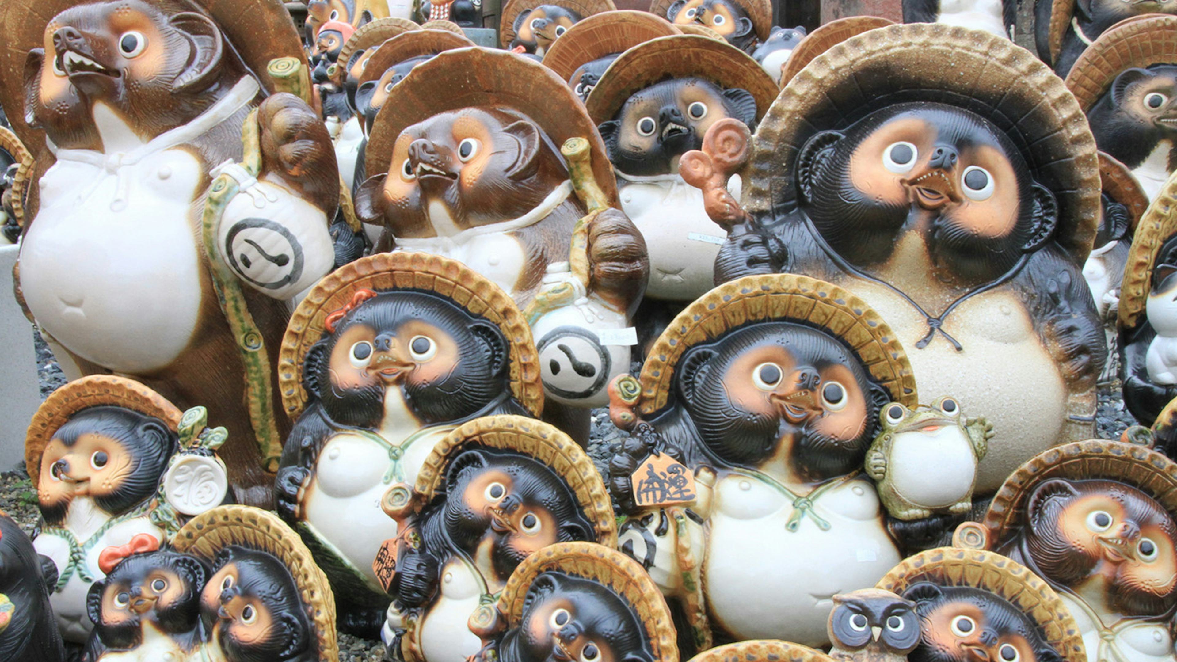 大小さまざまなタヌキが勢ぞろい! 旅の始まりを彩る記念撮影スポット