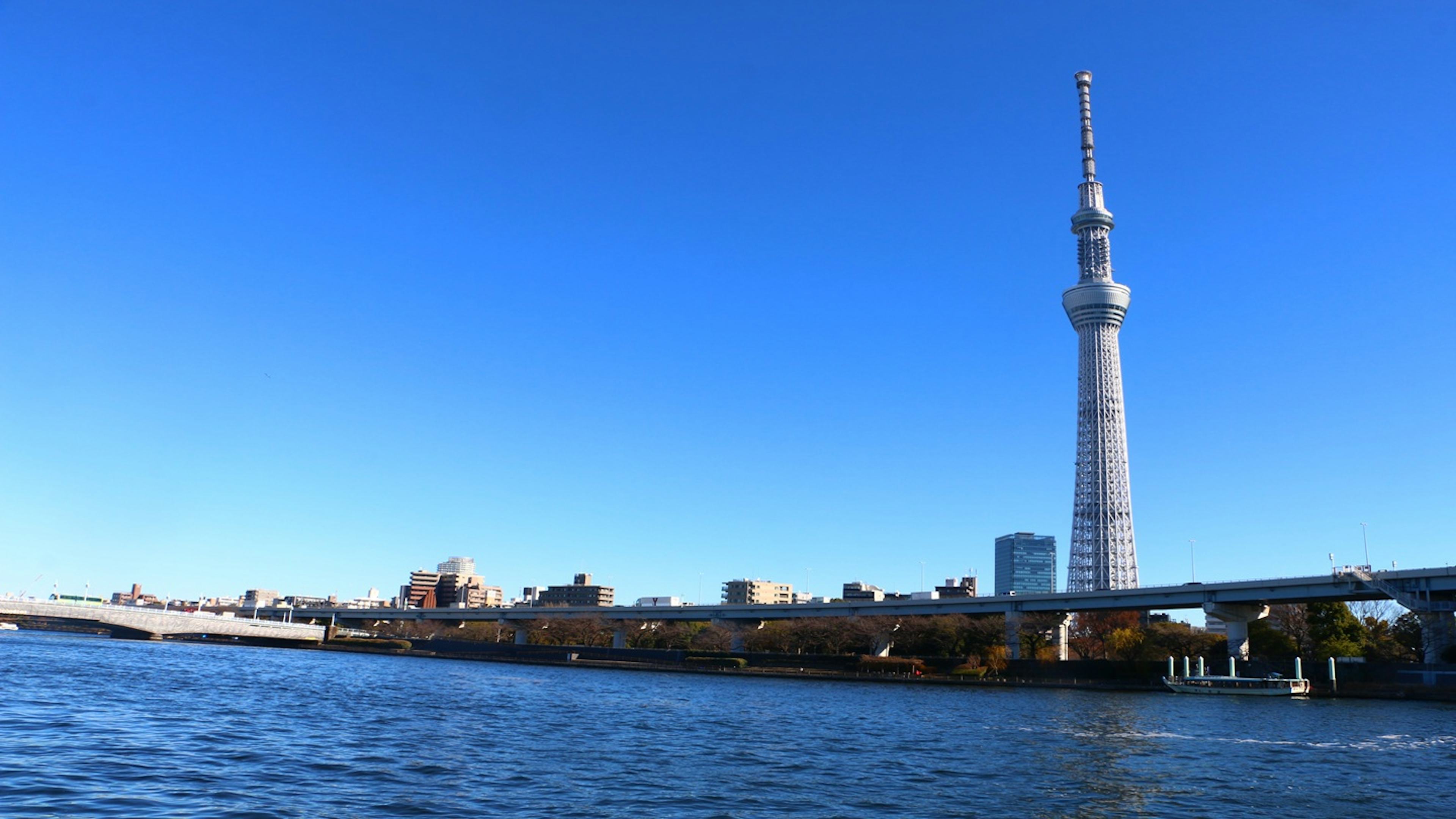 公園内には遊歩道や広場があり、地元の人々の憩いの場となっています。また、隅田川の対岸には東京スカイツリー®が見え、特に夜景が美しいことで人気です。