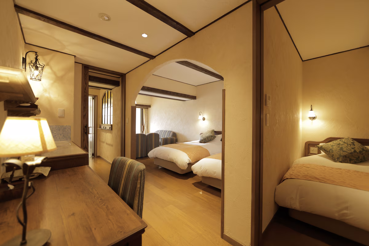 ラビスタ富士河口湖には、子連れファミリーにおすすめの客室タイプがそろっています。ダブル、ツイン、トリプルに加えて、フォース(4ベッド)やメゾネットタイプ、露天風呂つき客室など、さまざまなタイプからえらべます。
