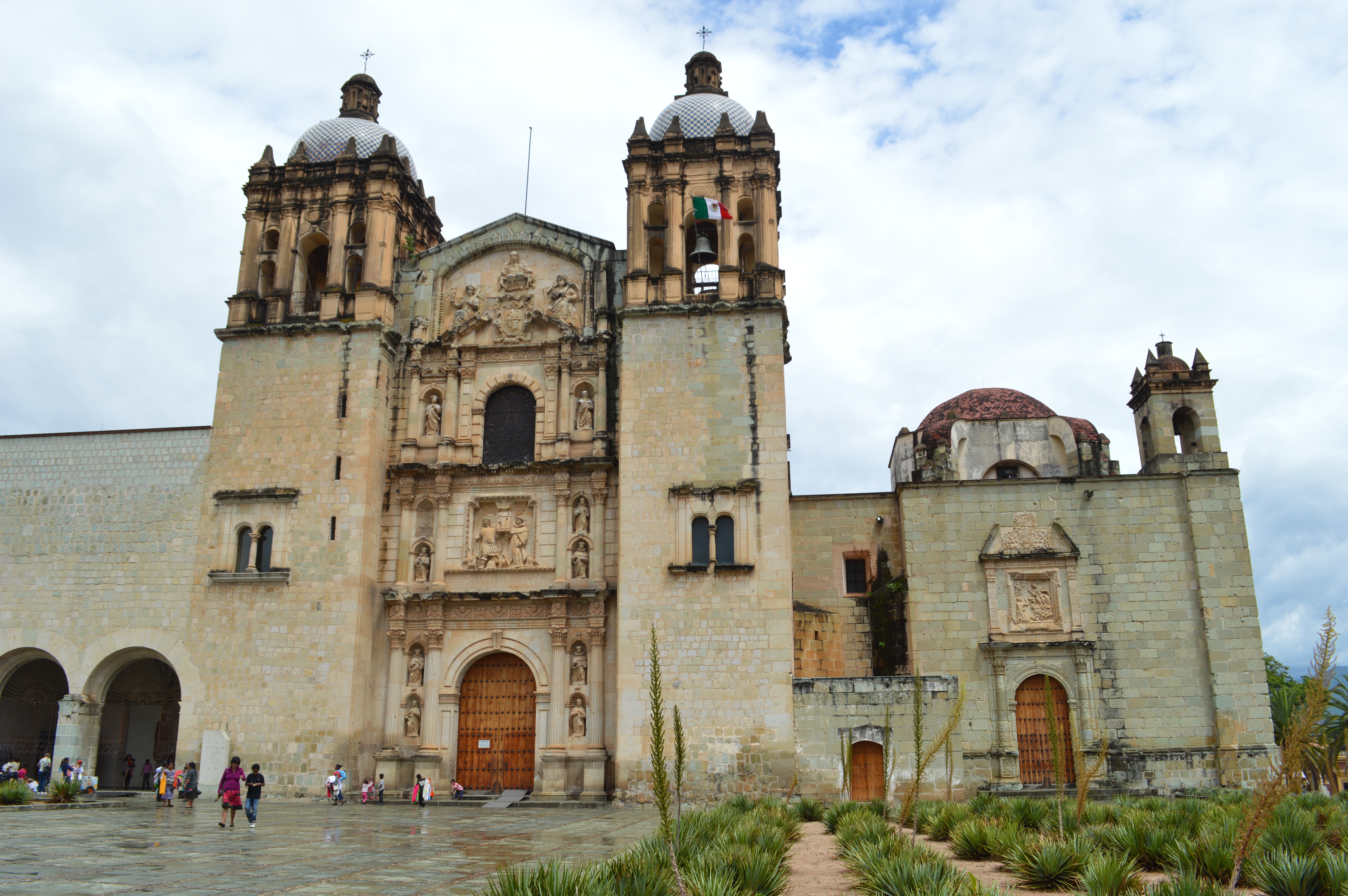 外壁を覆う緻密な石彫刻と、内部に飾られた華麗な祭壇は一見の価値があります。「孤独の聖母」と呼ばれる守護聖母像は、ダイヤモンドをちりばめた王冠をいただいており、オアハカ市民の守り神として崇められています。